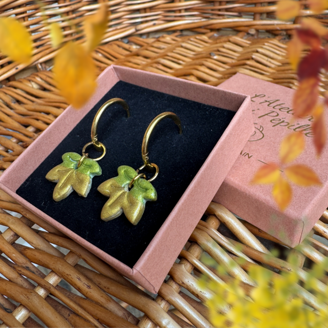 Chaque création est unique. La fabrication artisanale fait que les couleurs et formes peuvent légèrement différer de la photo, rendant chaque paire unique.