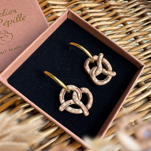 Chaque création est unique. La fabrication artisanale fait que les couleurs et formes peuvent légèrement différer de la photo, rendant chaque paire unique.