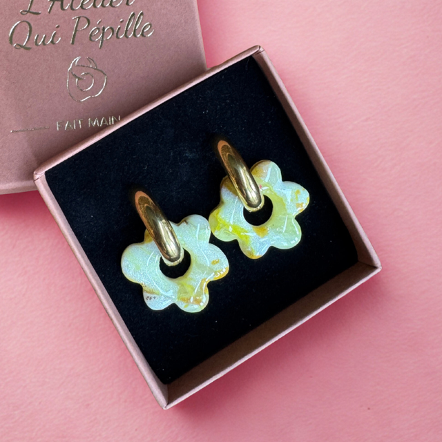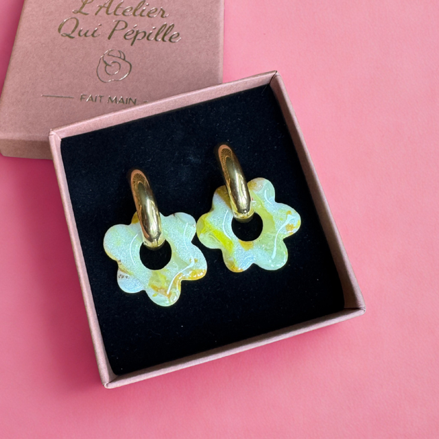 La fabrication artisanale fait que les couleurs et formes peuvent légèrement différer de la photo, rendant chaque paire si précieuse.