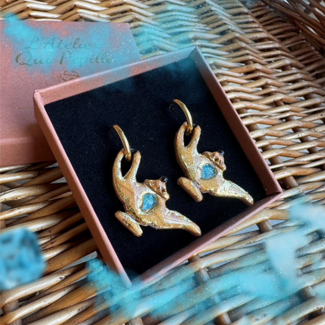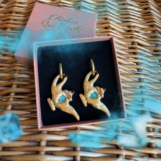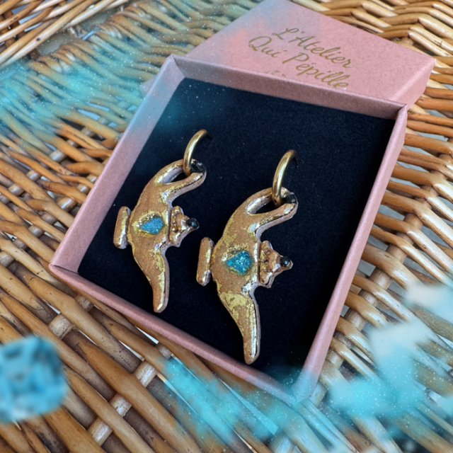 Chaque création est unique. La fabrication artisanale fait que les couleurs et formes peuvent légèrement différer de la photo, rendant chaque paire unique.