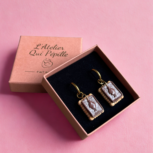 ⊹ Emballées dans un petit écrin OFFERT en carton recyclable, au nom de l'Atelier Qui Pépille