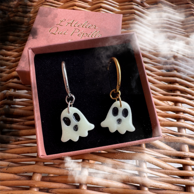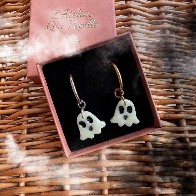 Chaque création est unique. La fabrication artisanale fait que les couleurs et formes peuvent légèrement différer de la photo, rendant chaque paire unique.